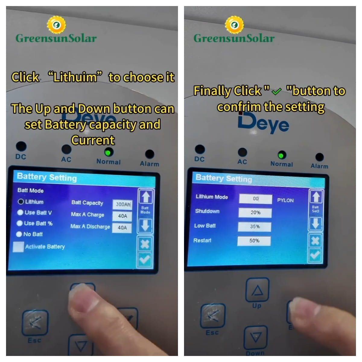 3.Click “System Setup Icon”and then click“Battery Setting”. Choose“Lithium” and set battery Capacity and Current(based on your battery). Finally click“√”to confirm the setting.