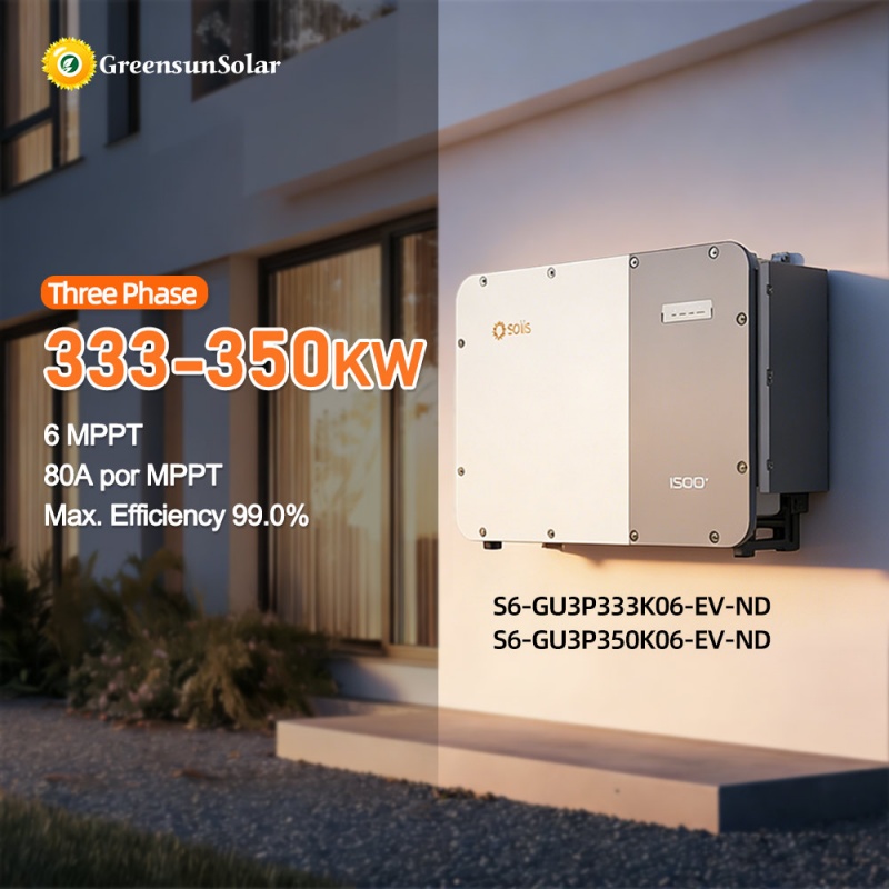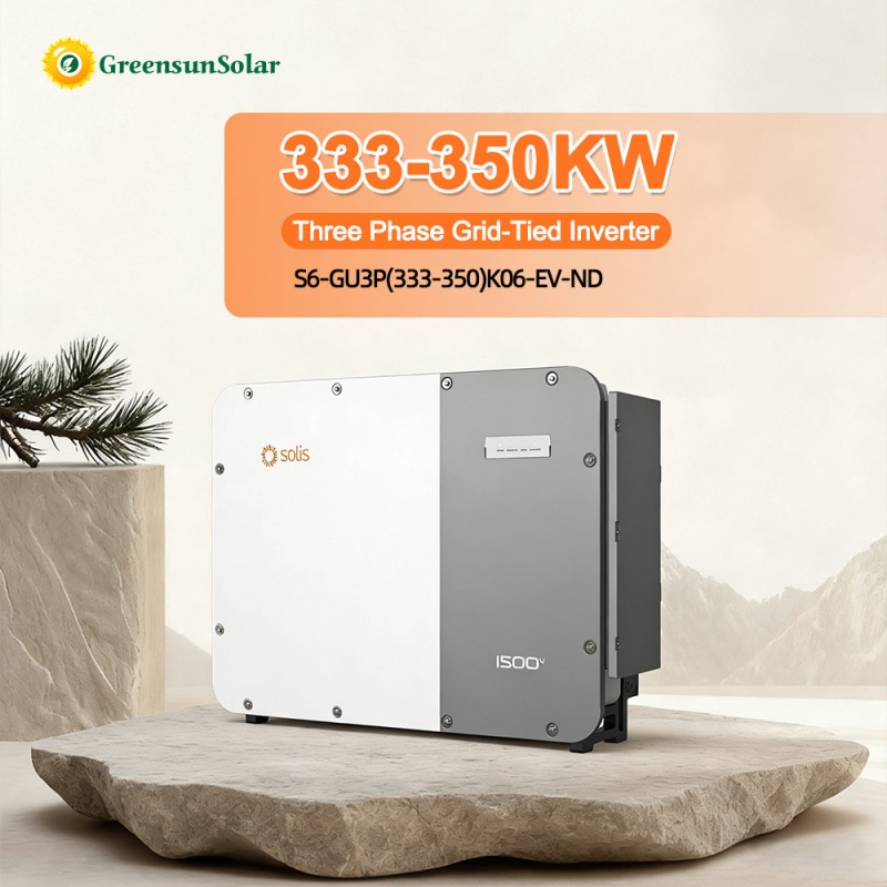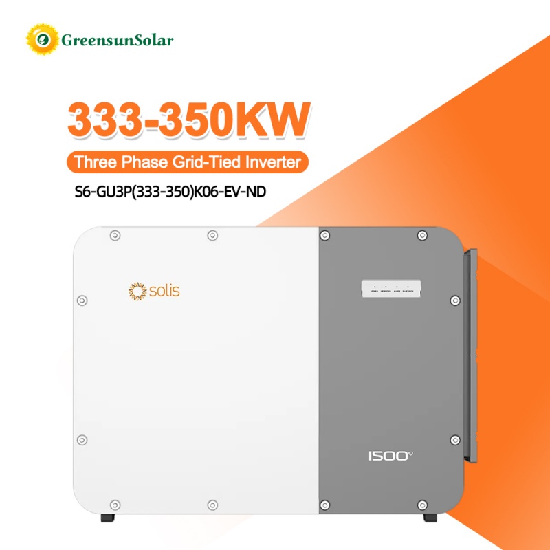 Solis S6-GU3P(333-350)K06-EV-ND three-phase PV inverters with a power of 333KW,350kW, 1500V DC input and 800 VAC output are designed to provide a more cost-effective adaptive solution for utility PV projects. It has maximum efficiency of up to 99%, with 6 MPPTs and 30 inputs, It also with additional safety technologies, including intelligent remote release functionality for DC switches, AC/DC terminal temperature detection,etc.. The system provides protection up to IP66 protection rating and C5-M corrosion resistance rating, making PV plant safer and more stable. Even at an ambient temperature of 51°C, it can maintain 86%Pn output power, thereby achieving higher power generation.