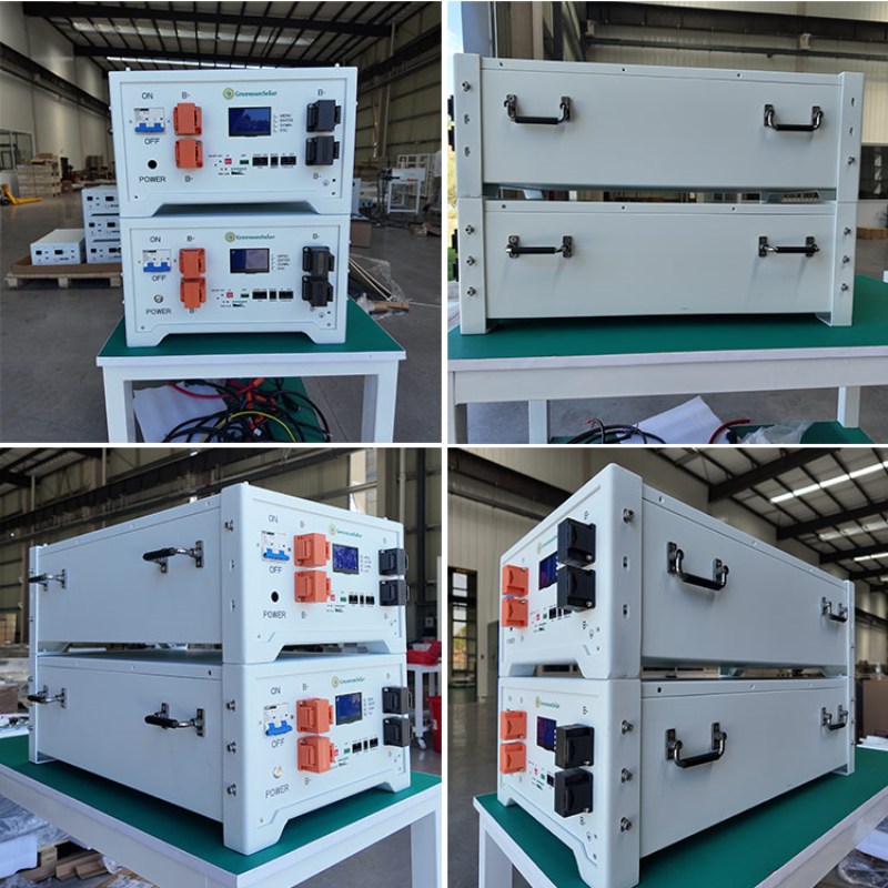 La batería de bajo voltaje cuenta con ruedas para facilitar su transporte y desplazamiento, y es muy fácil de instalar. La batería de litio apilada de bajo voltaje suele fabricarse con cuatro asas y un soporte sencillo para ahorrar espacio.